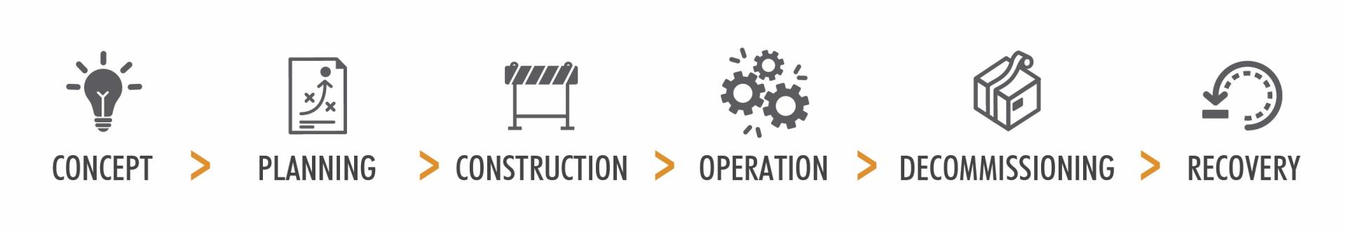 Stages in the life cycle of a proposed action. An impact assessment should consider the entire lifetime of a proposed action because impacts on Outstanding Universal Value might occur at any phase.